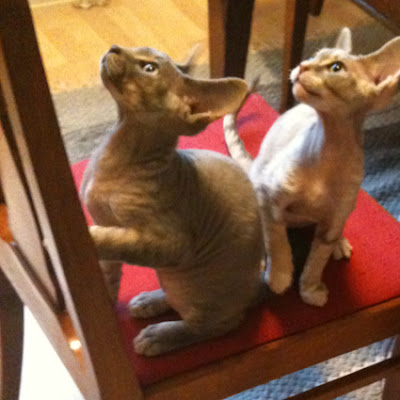 Last friday we picked up this lovley Devon Rex kitten. We call him Hajen, that mean shark in english. I have always been alergic to cats but had high hopes cause Devon Rex is known to fit alergic people. Past days I am sad to say that I have developed all the allergy sympthoms, including asthma. I had to decide today that the cat has to go back to the breeder and I AM SO SAD! He is such lovley little thing, he has a fantastic social ability and he is great with the kids. And the kids love him. This evening little V whispered into his big ear that she loves him. It just breaks my heart that we have to give him up.